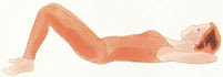استلقي على ظهرك ، اثني ركبتيك بحيث تلمس قدماك الأرض . اتركي ذراعيك مسترخيتان على كل جنب، ارفعي منطقة الخصر وعدي إلى ستة، ثم عودي إلى الوضع السابق واستريحي .