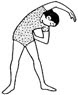 قفي، افتحي رجليك باتساع مستوى الكتف، ضعي يدك اليسرى على جهة خصرك الأيسر، أرفعي يدك اليمنى وحركيهما فوق الرأس مع ثني الخصر إلى اليسرى، كرري 4 مرات وغيّري الذراع .