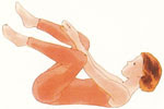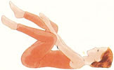 استلقي على ظهرك، واثني ركبة وارفعيها باتجاه الصدر مع مسكها بقوة بذراعيك، شدي المنطقة الخلفية والبطن واضغطي للأسفل باتجاه الأرض . ثم انزلي رجليك ببطء واعملي نفس الشيء بالأخرى، وكرري .