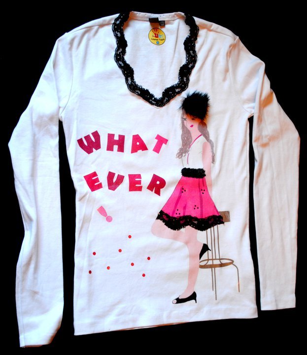 السادس : تيشيرت برسمة بحلق دانتيل أسود