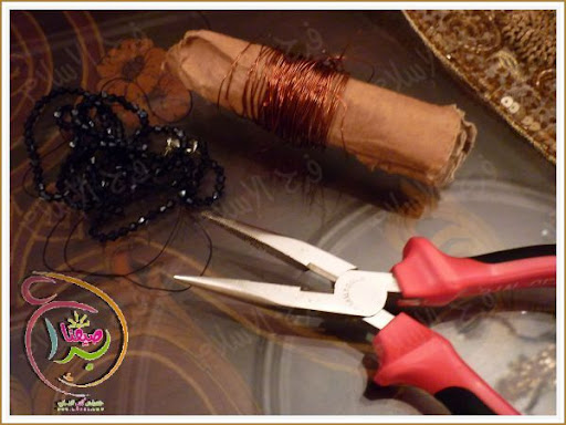 نلف السلك الملئ بالخرز علي شكل دائره ونبرم الطرفين معا جيدا