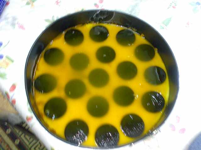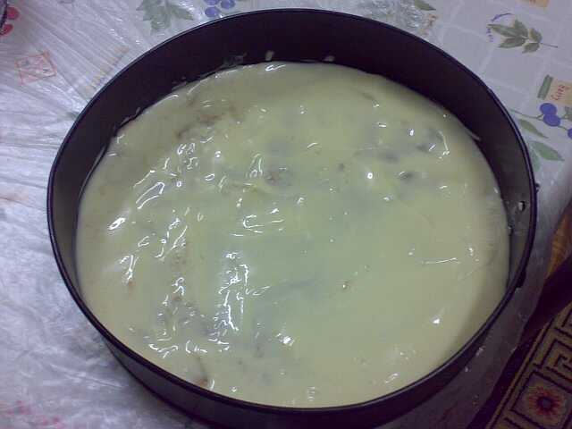 ندخل الصينة الفرن وهو حار لكي تتماسك الطبقة الثانية ثم نخرجها من الفرن