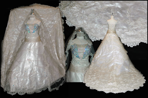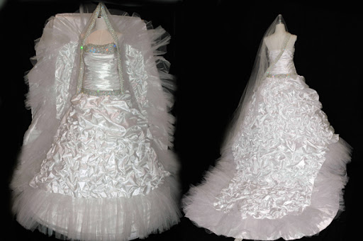 فستان اوربي دانتيل وكرستال وطرحه قصيره اوف وايت قطعه وحده جديد