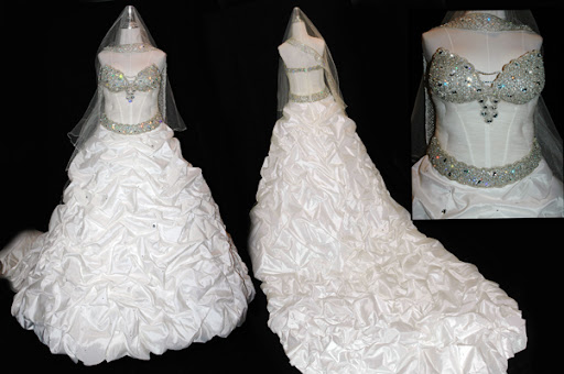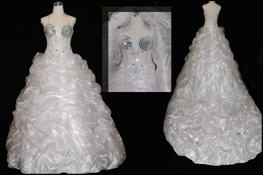 فستان ابيض قطعتين تطريز مع كرستال ملبوس مره وحده