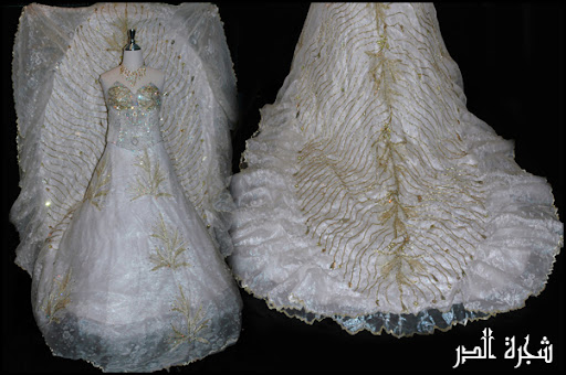 فستان على شكل فروع الشجر اوف وايت ذهبي قطهتين ملبوس مره