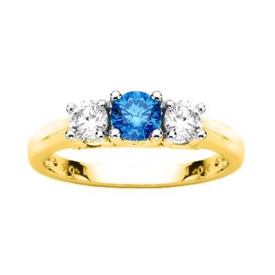خواتم ذهب أبيض واصفر مرصع بحجر ماسي أزرق