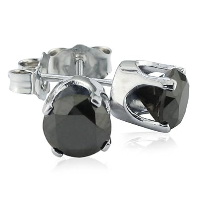حلق ذهب أبيض مرصع بحجر ماسي اسود